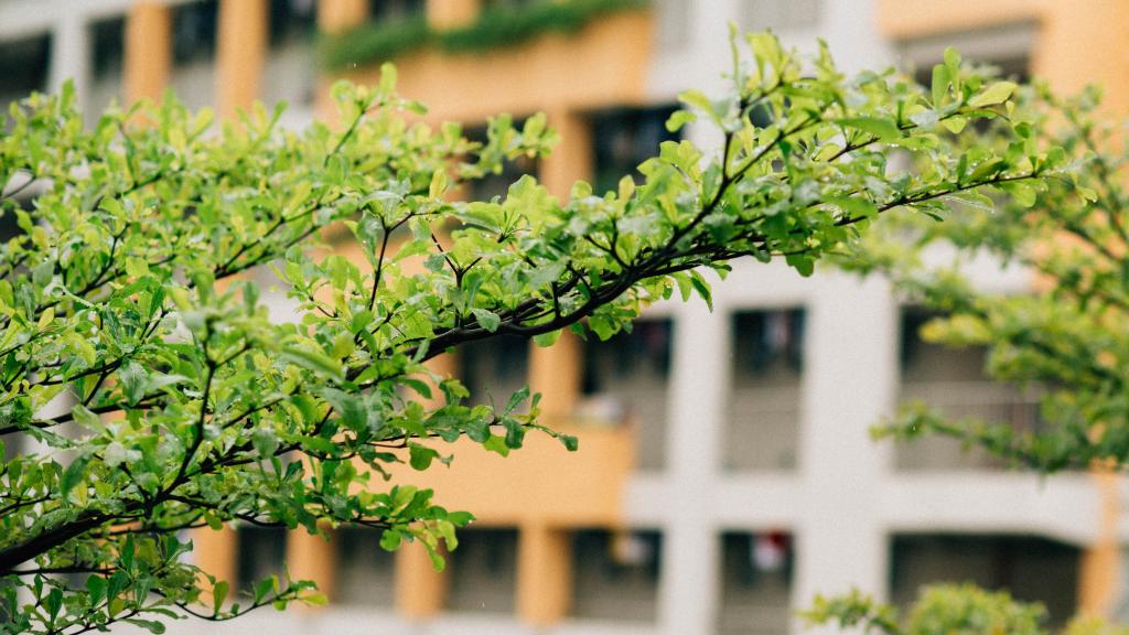 宿舍楼前的绿意盎然