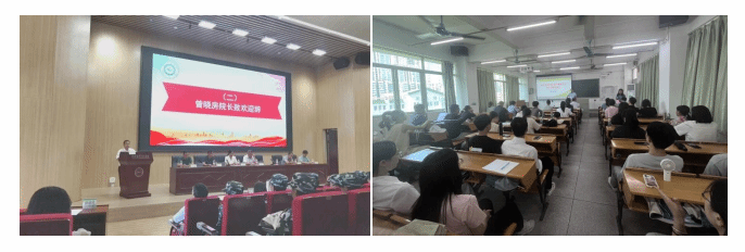 两校区见面会上,学院院长曾晓房代表学院向全体新生致以最诚挚的欢迎,他眼中饱含期待地寄语全体新生:“愿诸君以仲园为舟,以梦为帆,与学校、学院同频共振,共绘辉煌画卷;以团队为伴,以交流为桥,携手导师,共赴科研征途;以深思为翼,以素养为基,培育科研之魂;以情趣为墨,以全面为纸,绘就多彩人生;不忘初心,志存高远,让青春的每一步都坚实而辉煌。”他希望同学们能尽快适应身份转变,认真锤炼品格意志,始终坚定理想信念,立足世界眼光,秉持创新精神,锚定实践坐标,脚踏实地服务国家和社会,绽放绚烂的青春之花.