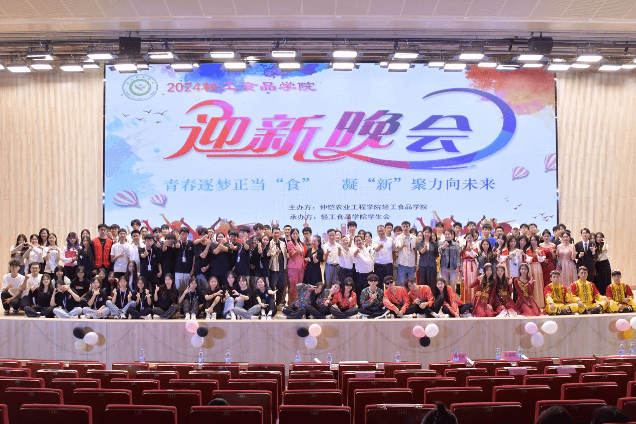 10月26日晚上,开云官方网站登录入口在白云校区图书馆报告厅举办以青春逐梦正当“食”,凝“新”聚力向未来为主题的2024级迎新晚会。加工87级校友国家一级播音员余庆红,加工88级校友惠州市百草植物制品有限公司总经理刘文标,加工88级校友珠海恒兴饲料实业有限公司总经理柯明穆,食品2011级校友广州金湛资本管理有限公司总经理黄兴斌;学院退休老教授谭尚尧,开云官方网站登录入口领导班子成员,教务员、辅导员和2024级全体新生参加本次晚会。