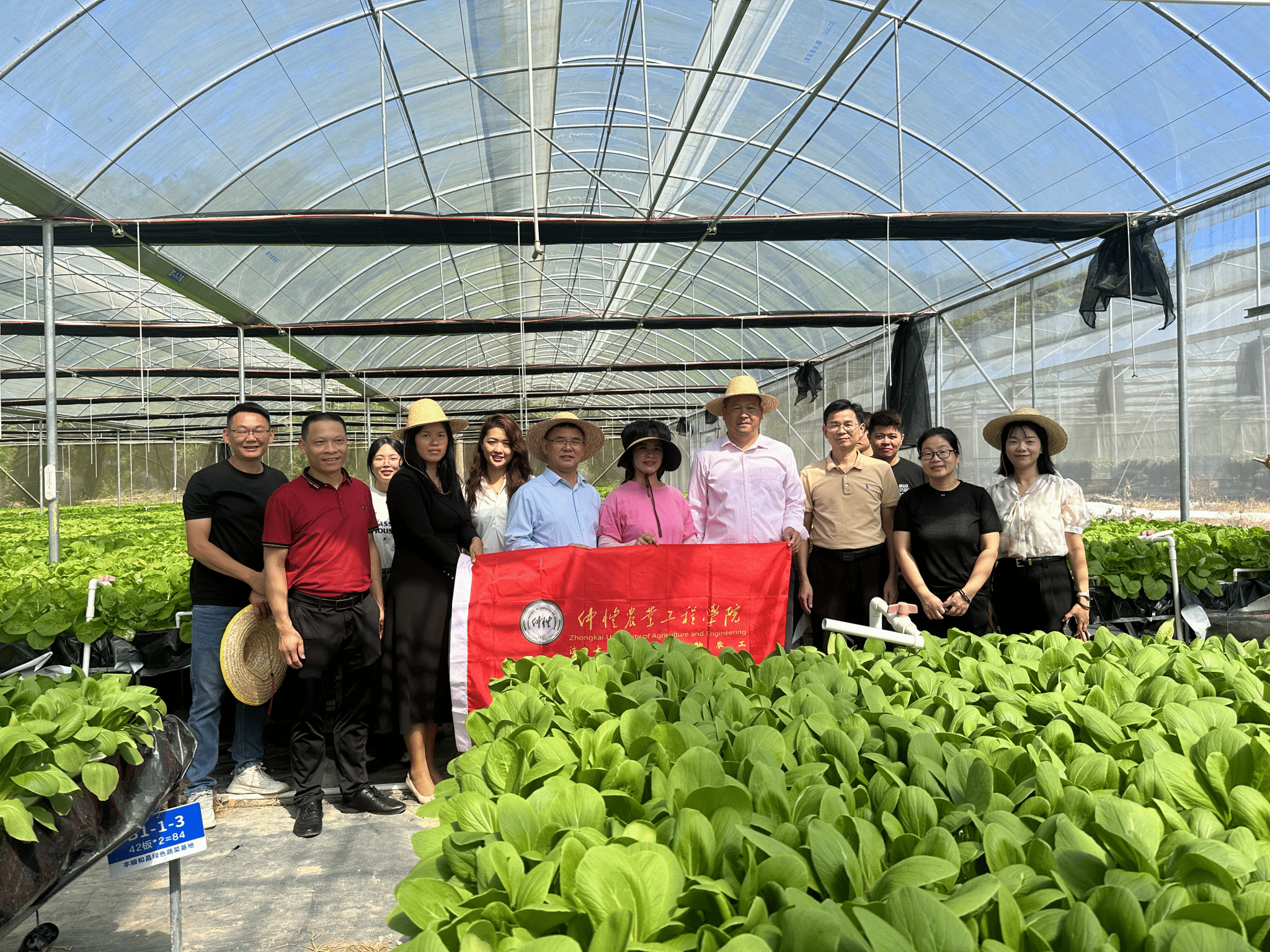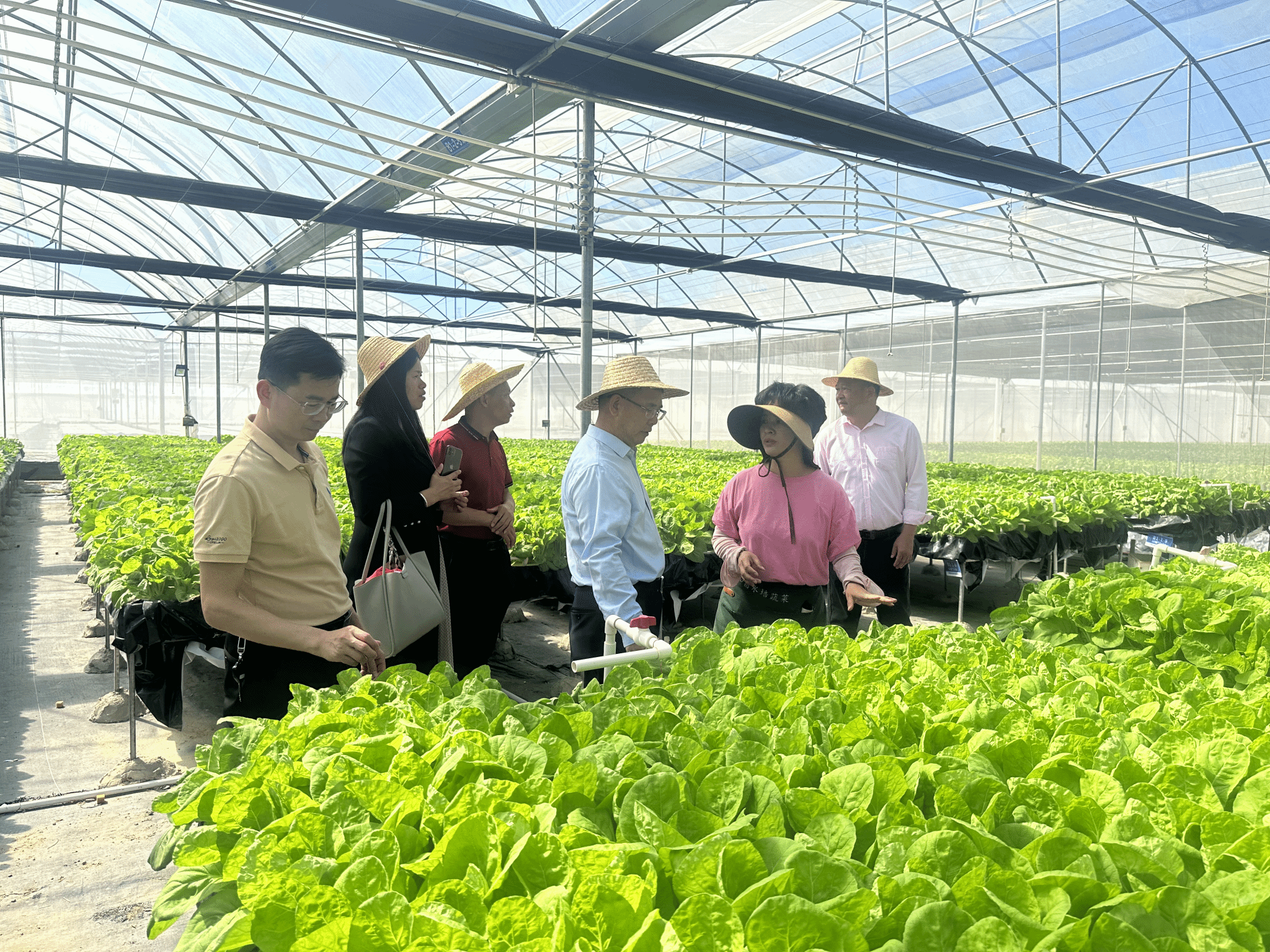 调研组前往下村和昌绿色蔬菜基地,在基地负责人的介绍下,调研组深入了解了水培蔬菜的生长环境、营养供给以及病虫害防控等关键环节。在参观过程中,调研组与企业负责人就企业农产品进一步转型升级进行了深入交流。尹国强表示,仲恺农业工程学院在农业技术研发和人才培养方面有着丰富的经验和资源,可为企业提供技术支持和人才培训,助力企业实现技术创新和产业升级。吉燕提出,双方可以在农产品深加工、品牌建设等方面开展合作,共同推动丰顺县现代农业的发展。企业负责人对仲恺农业工程学院提供的支持表示感谢,希望能共同探索现代农业发展的新路径,为丰顺县的经济发展贡献力量。
