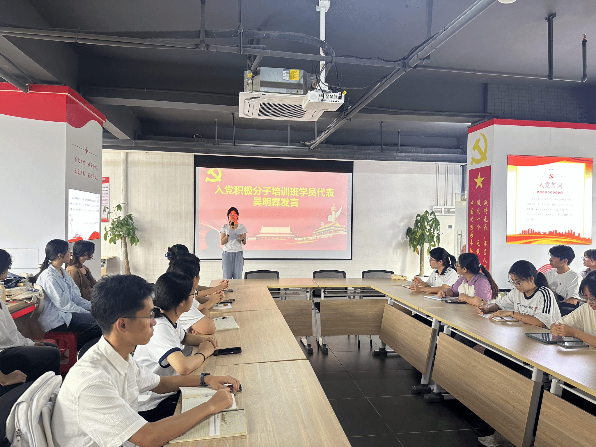 “青马工程”培训班学员代表林佩娜与入党积极分子培训班学员代表吴明霖分别发言,表示将珍惜培训机会,学以致用,并呼吁同学们勤奋学习知识,在学习中成长,在成长中实践,勇于担当,砥砺奋进,为学院学校发展贡献力量。