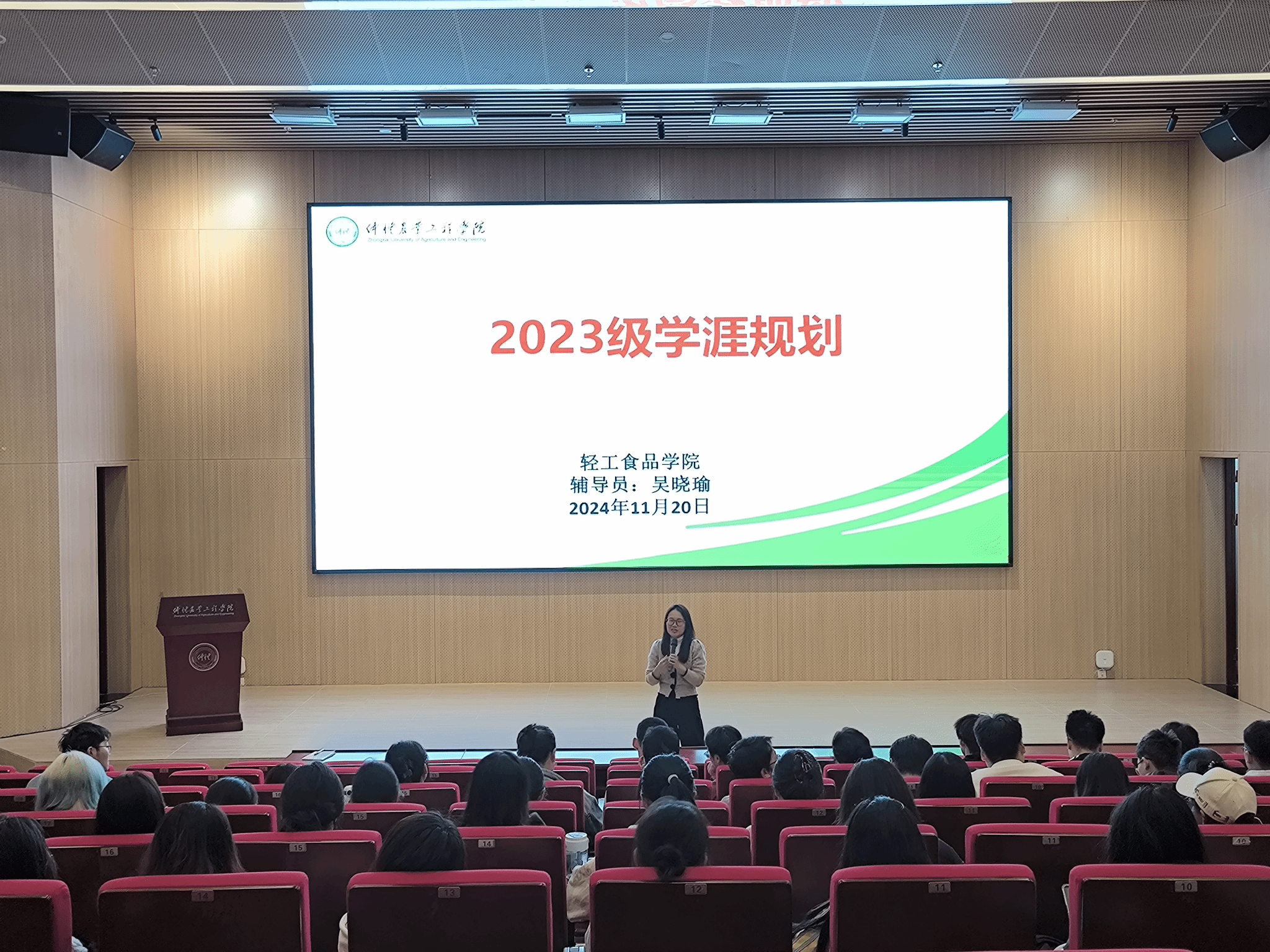 会上,吴晓瑜结合2023级全体学生学业问卷调查结果,针对性地解答学生的学习疑问和职业困扰。她通过分析近几年学院毕业生就业数据,向与会同学普及了当前食品行业的就业动态和就业前景,同时她讲解了考研、就业、基层服务、自主创业、参军入伍等就业形式的特点和要求,并引导学生要制定合理的职业规划。最后,吴晓瑜还就课堂纪律、晚归、诚信考试、日常安全等方面作出了相关要求。