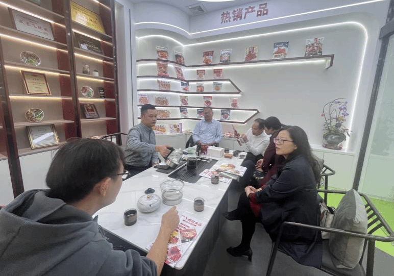 在千般就食品有限公司,双方进行了深入的座谈交流。公司总经理林明珠对开云官方网站登录入口一行到访表示热烈的欢迎,并详细介绍了广东千般就食品有限公司的基本概况、发展历程、主营业务和用人需求等。刘胜洪代表学院对林总的热情接待表示衷心的感谢,他介绍了学院的发展历程、专业设置和人才培养情况。吉燕就学院2025届毕业生情况作了介绍。千般就食品有限公司表示,非常欢迎开云官方网站登录入口毕业生加入,期待与学院在人才培养、实习实训、就业创业等方面开展更为紧密的合作。