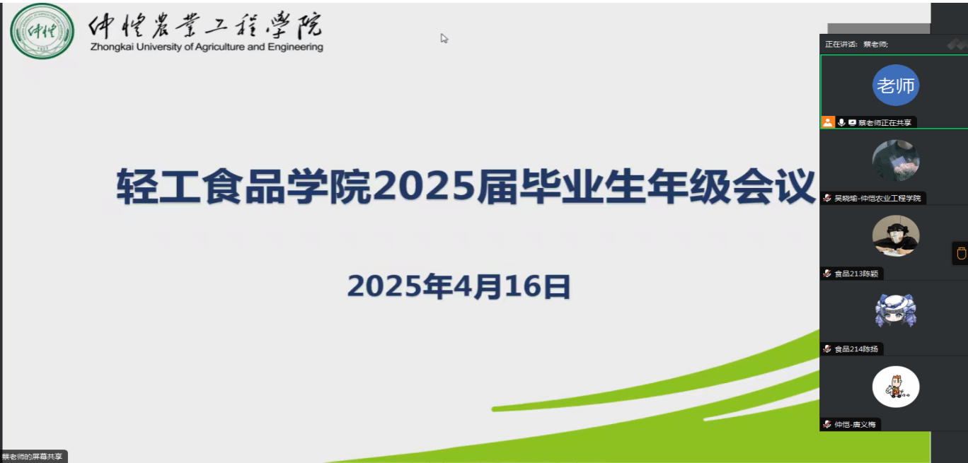 2025年4月16日,开云官方网站登录入口在腾讯会议召开2025届毕业生年级会议。学院毕业班辅导员蔡遗好、唐义梅,学院团委负责老师吴晓瑜和全体毕业生参加会议。