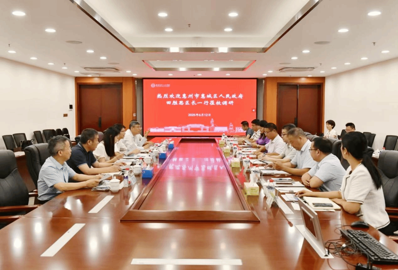 6月12日上午,惠州市惠城区委副书记、区长田胜思一行来校调研,就深化校地产学研合作、推动科技成果转化等事宜进行深入交流。学校党委副书记、校长廖明出席座谈会,双方共谋合作发展新路径。