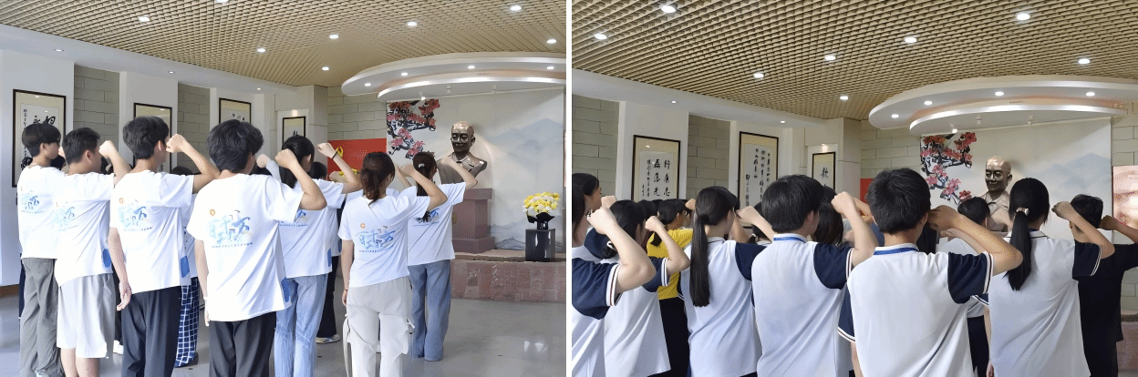 参观结束后,全体人员在镌刻着金色馆名的纪念馆前,举行了庄重的重温入党誓词仪式。大家整齐列队,神情肃穆,在领誓人的带领下,铿锵有力的誓言响彻上空,充分表达了师生党员们对党的无限忠诚和为共产主义事业奋斗的坚定决心。
