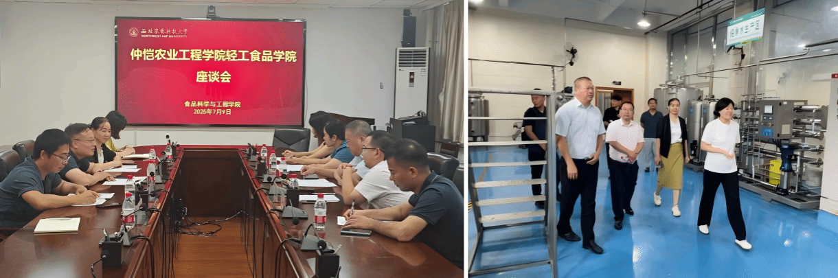 7月9日上午,调研团队首站抵达西北农林科技大学食品科学与工程学院,受到院长吕欣等领导老师的热情接待。座谈会上,吕欣院长详细介绍了学院“从田间到餐桌”的全链条学科布局及特色成果。曾晓房院长分享了我院在岭南特色农产品加工与质量安全控制领域的学科优势,刘胜洪书记就基层党建与学科建设深度融合的创新实践作了介绍。双方在联合申报国家重点研发计划、共建粤港澳大湾区食品检测中心等议题上达成合作意向。会后,团队参观了中试实验中心的果蔬加工智能化生产线,其“学科-平台-产业”联动模式为我院新工科建设提供了宝贵经验。