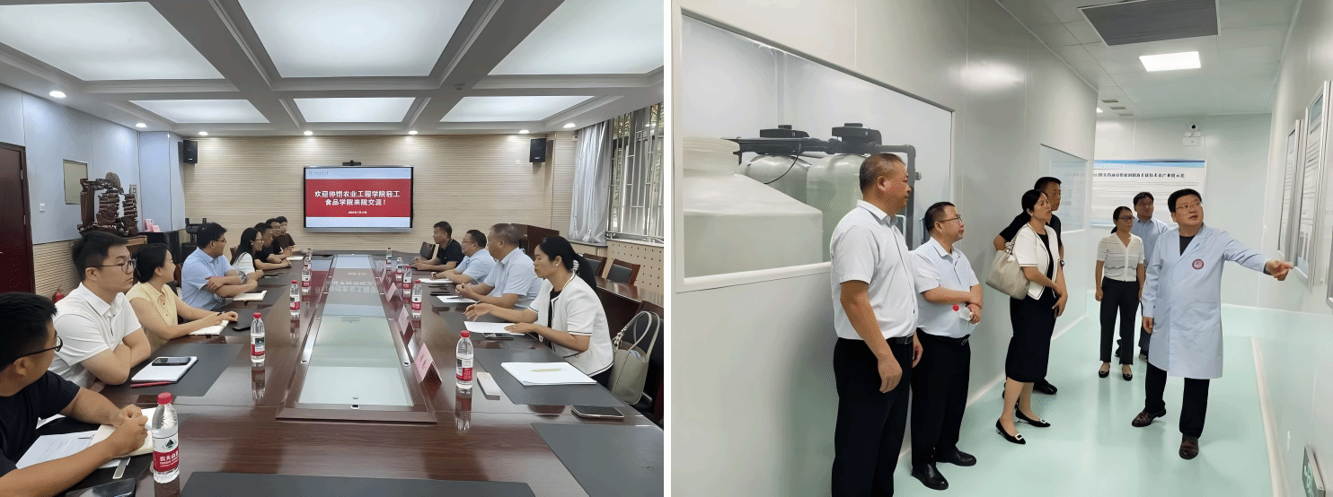 7月10日上午,团队前往陕西师范大学食品工程与营养科学学院调研。双方重点围绕功能食品研发、营养健康教育及课程思政建设展开深入交流。团队还实地参观了现代化食品加工实训中心,观摩了功能性食品开发、食品安全快速检测等实训教学基地,并就实践教学体系与理论课程的衔接问题进行了专项研讨。