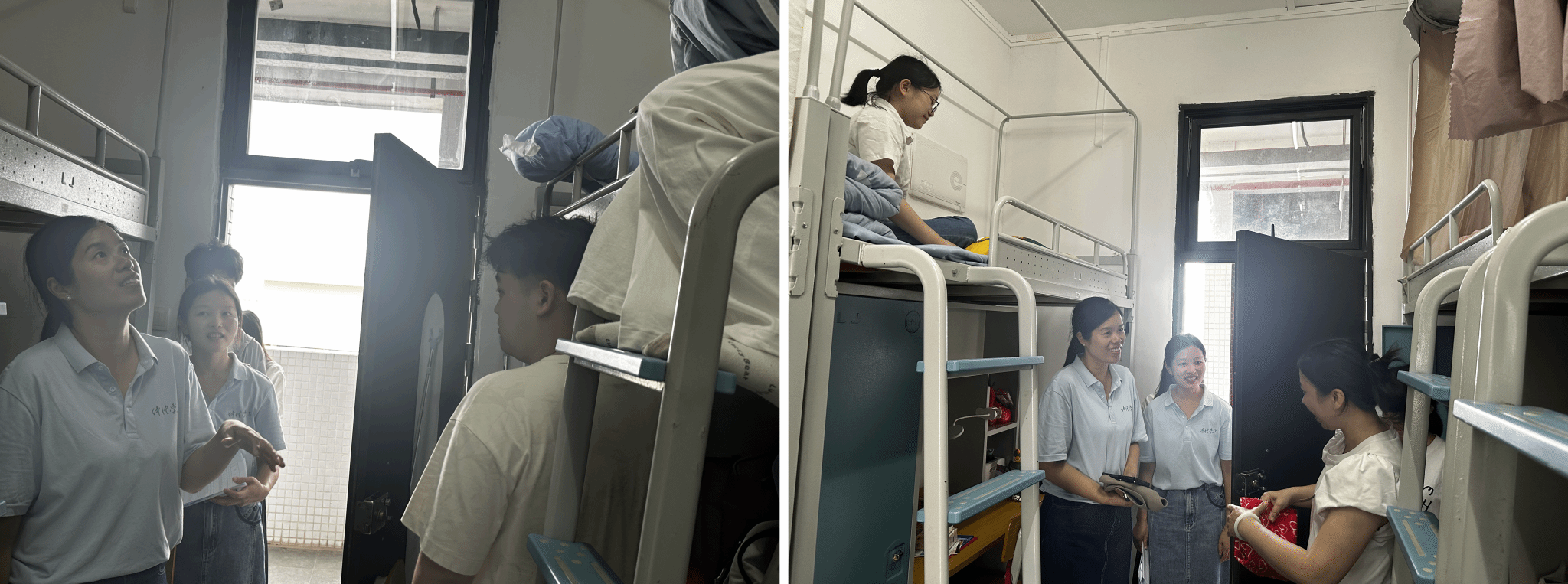 当天下午,学院党委副书记吉燕与辅导员一行深入新生宿舍,亲切慰问新生及家长。“同学从哪里来?”“行李都收拾好了吗?”吉燕如家人般关心每位学生的适应情况,鼓励大家互帮互助、共同营造温馨和谐的宿舍氛围,并叮嘱同学们珍惜大学时光、勤奋学习、全面发展。