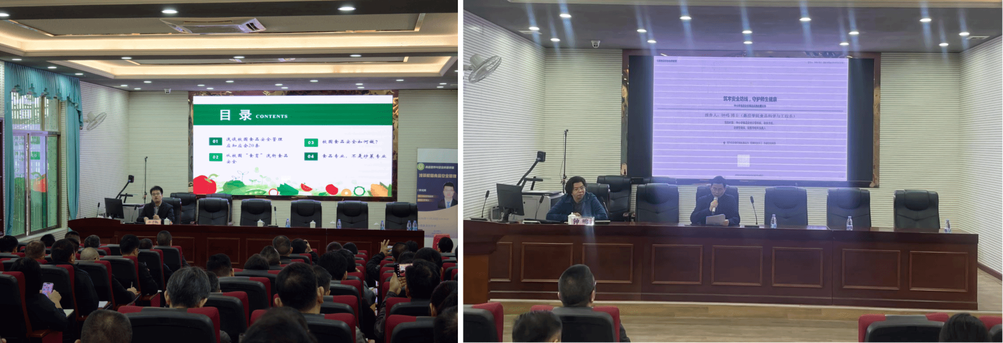 本次培训内容精准聚焦实际问题,紧扣校园食品安全管理的关键环节。我院食品质量与安全系李光辉博士围绕“校园食品安全管理应知应会20条”进行了系统解读,涵盖法规标准、流程规范和典型案例,为各中小学及幼儿园落实主体责任、完善管理体系提供了实用指导。嘉应学院钟鸣博士则针对“中小学食品安全事故应急处置”展开讲解,有效提升了参训人员的风险防控和实战应对能力。学员们纷纷表示,此次培训内容翔实、针对性强,对日后规范校园食品安全管理、预防安全事故具有重要的指导意义。