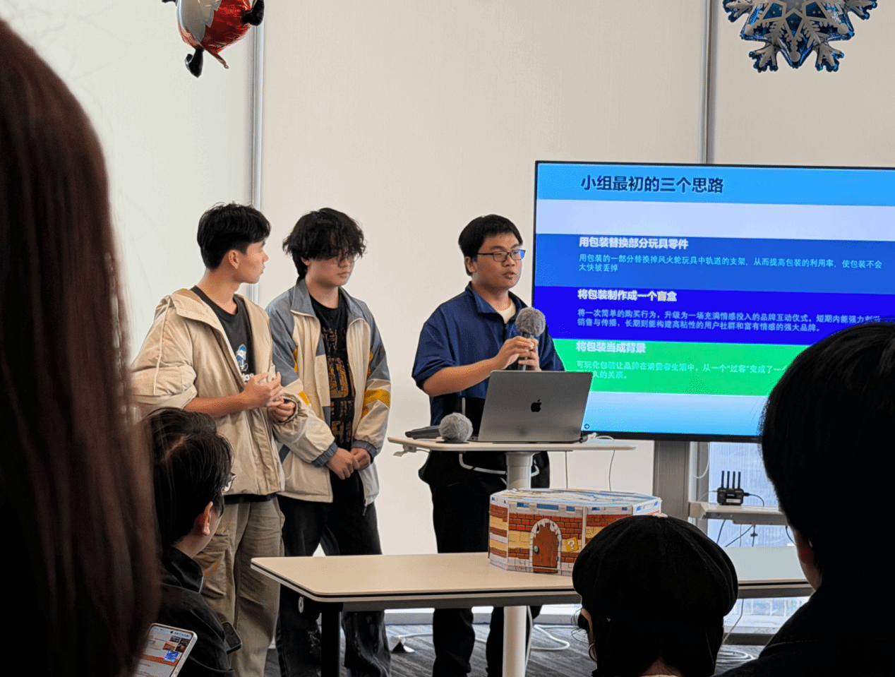 美泰公司作为全球知名玩具企业,在儿童产品设计、生产与销售领域具有领先地位。本次合作前期经过校企双方多轮研讨,共同制定了课程合作协议与实施方案。课程聚焦行业发展趋势,围绕环保包装、创意包装与功能包装三大主题展开实践探索。为激发学生创新与实践热情,美泰公司设立了专项奖励机制,包括金奖(3000元)、银奖(1500元)、铜奖(600元),并增设“最实用奖”与“最佳展示奖”,鼓励学生在专业能力与综合素质上全面发展。项目启动后,学生以小组形式积极开展实践。从市场调研入手,深入分析行业技术痛点与市场趋势,结合课堂所学的理论知识,构思初步的设计框架。在方案设计阶段,美泰公司行业导师与学院专业教师共同组成指导团队,从材料选择、结构设计、成本控制等多角度为学生提供全程指导。各小组在研讨中不断优化方案,通过多轮修改与完善,逐步将创意转化为可行设计。