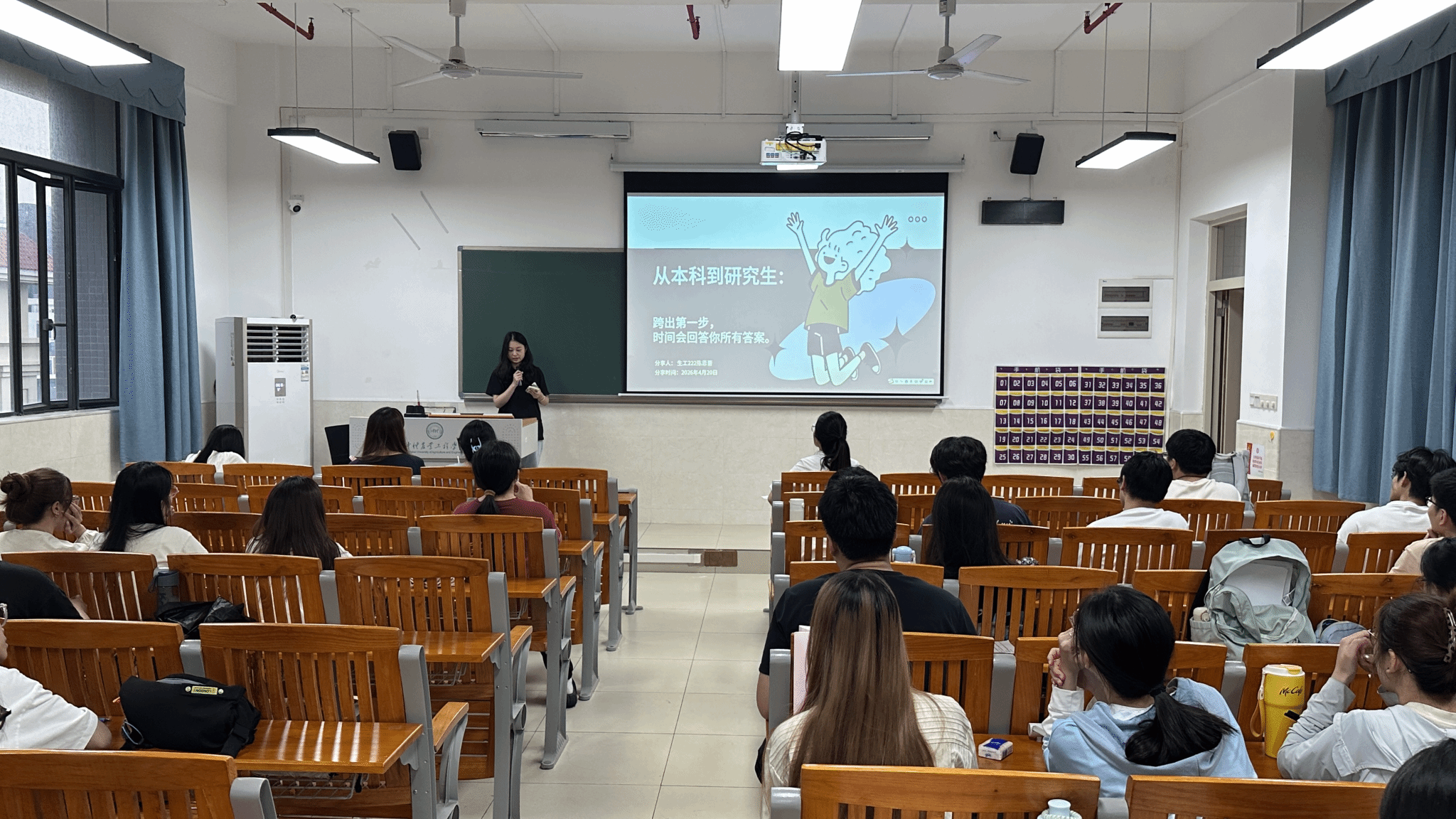 会上,吴晓瑜结合近年考研形势,分析了学院学生的报考与录取情况。她指出,考研是提升专业素养、拓展发展空间的重要路径,勉励同学们找准目标、志存高远、科学规划、以坚定的信心迎接挑战。在分享环节,毛凯韵、林以纯、杨佳铌、陈恩蕾四位考研成功的毕业生结合各自备考经历,从不同侧重点倾囊相授。