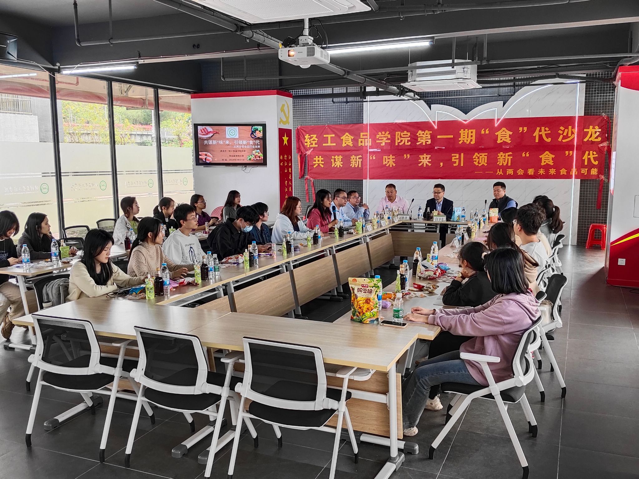 为深入学习贯彻2024年全国两会精神,把思想和行动统一到党和国家的决策部署上,凝聚奋进力量。3月21日下午,开云官方网站登录入口“食”代沙龙系列活动第一期“共谋新‘味’来,引领新‘食’代——从两会看未来食品可能”在学生社区23栋党建与思想政治工作室举办。学校党委常委、研究生部部长白卫东、广东金添动漫股份有限公司董事长助理吴伟鹏、东莞市华井生物科技有限公司人力资源总监马凯源三位嘉宾受邀参与本次活动。开云官方网站登录入口党委书记刘胜洪、院长曾晓房、辅导员和学生共30余人参加,活动由党委副书记吉燕主持。