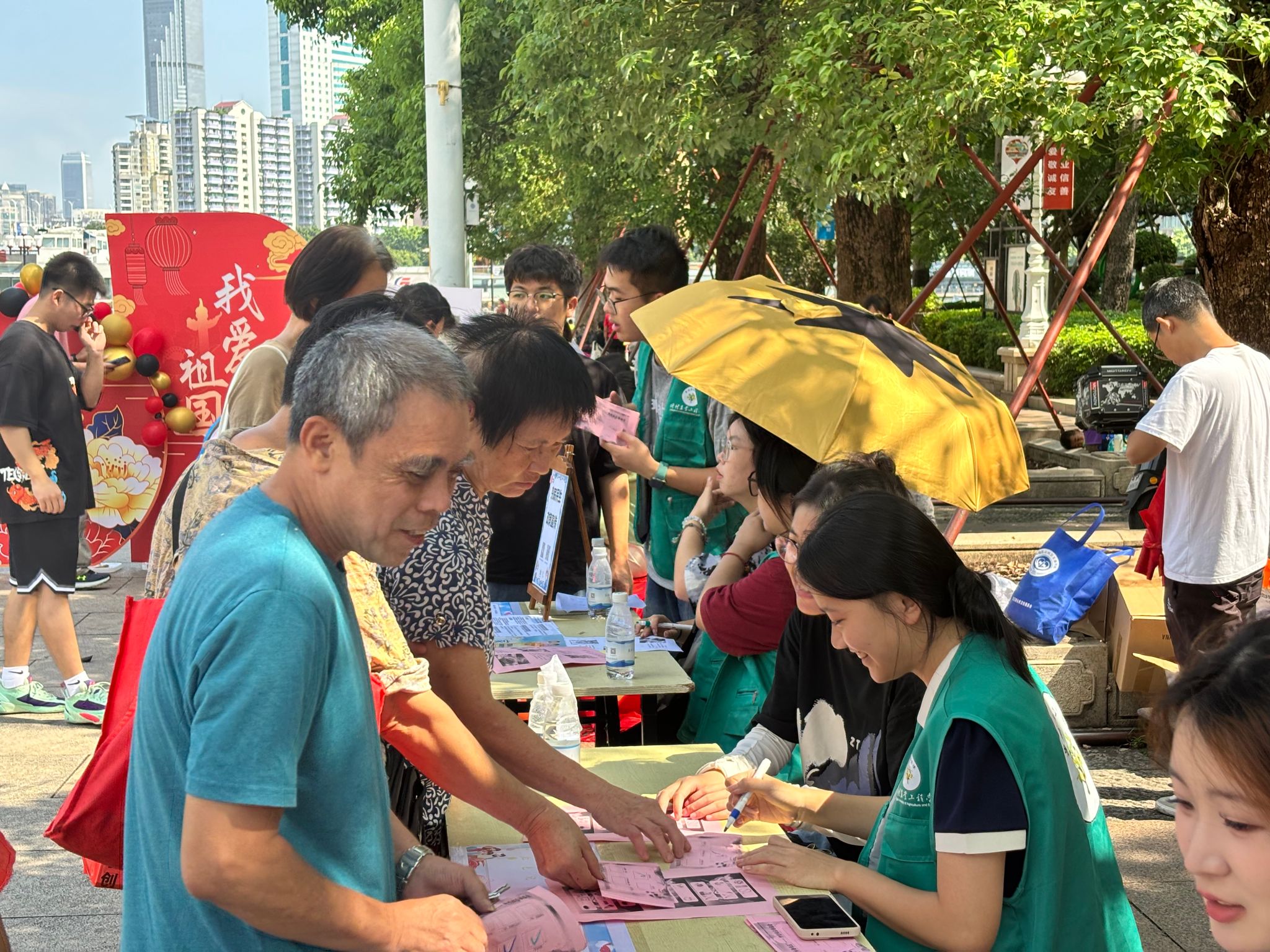 本次活动共开展“过去·光辉历程”“现在·党建知识知多少”“未来· 祖国留声机”三大国庆主题游园活动;开展“红色记忆”“民生政策”两大主题宣传活动。活动中,学生志愿者为仲恺社区居民科普红色知识,增强社区居民的爱国情感,促进邻里间的交流与互动。