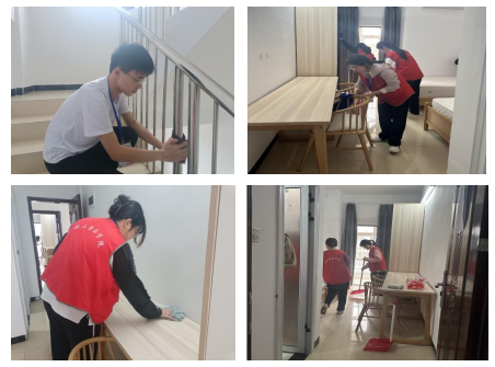 活动过程中,志愿者们身穿统一的志愿者服装,穿梭于在教师公寓里。他们不怕脏、不怕累,擦拭、打扫、拖地,从房间到走廊,再到楼梯,每一个角落都认真清洁。志愿者们团结协作,干劲十足的样子,淋漓尽致地展现了新时代仲恺青年积极奉献的形象。