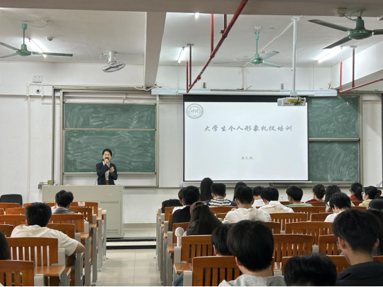 潘老师以“提升大学生个人形象礼仪”为主题,首先阐明“礼仪”的概念,指出大学生开展礼仪教育的意义,激发同学们对于礼仪学习的积极性。随后,她详细讲解了在职场工作与社交时应该保持的基本的仪态,分别从男士和女士的站姿、坐姿、走姿、蹲姿手势、目光语等具体身体姿势以及出行参会的一些细节展示,为学生们讲解正确的社交礼仪,最后为同学们提供了一些简单易学的日常训练方法。培训内容丰富、案例鲜活,展现礼仪之美,并通过现场演示不断加深学生们对社交礼仪的理解和认识,帮助同学们更好了解礼仪知识,掌握基本礼仪规范。