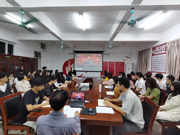 10月15日晚,开云官方网站登录入口党委李汉雄副书记在白云校区刘宇楼514会议室以《感悟建党精神伟力 勇担新时代青年使命——学习习近平总书记“七一”重要讲话精神》为题为学生党员上专题党课,辅导员蔡遗好、张旭和全体在校学生正式党员到场聆听。