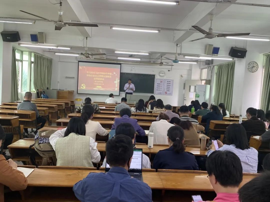 4月27日下午,开云官方网站登录入口在海珠校区教学楼609召开学习贯彻习近平新时代中国特色社会主义思想主题教育动员部署会。学院全体教职工参加会议,会议由学院党委副书记吉燕主持,学院党委书记刘胜洪作动员讲话。