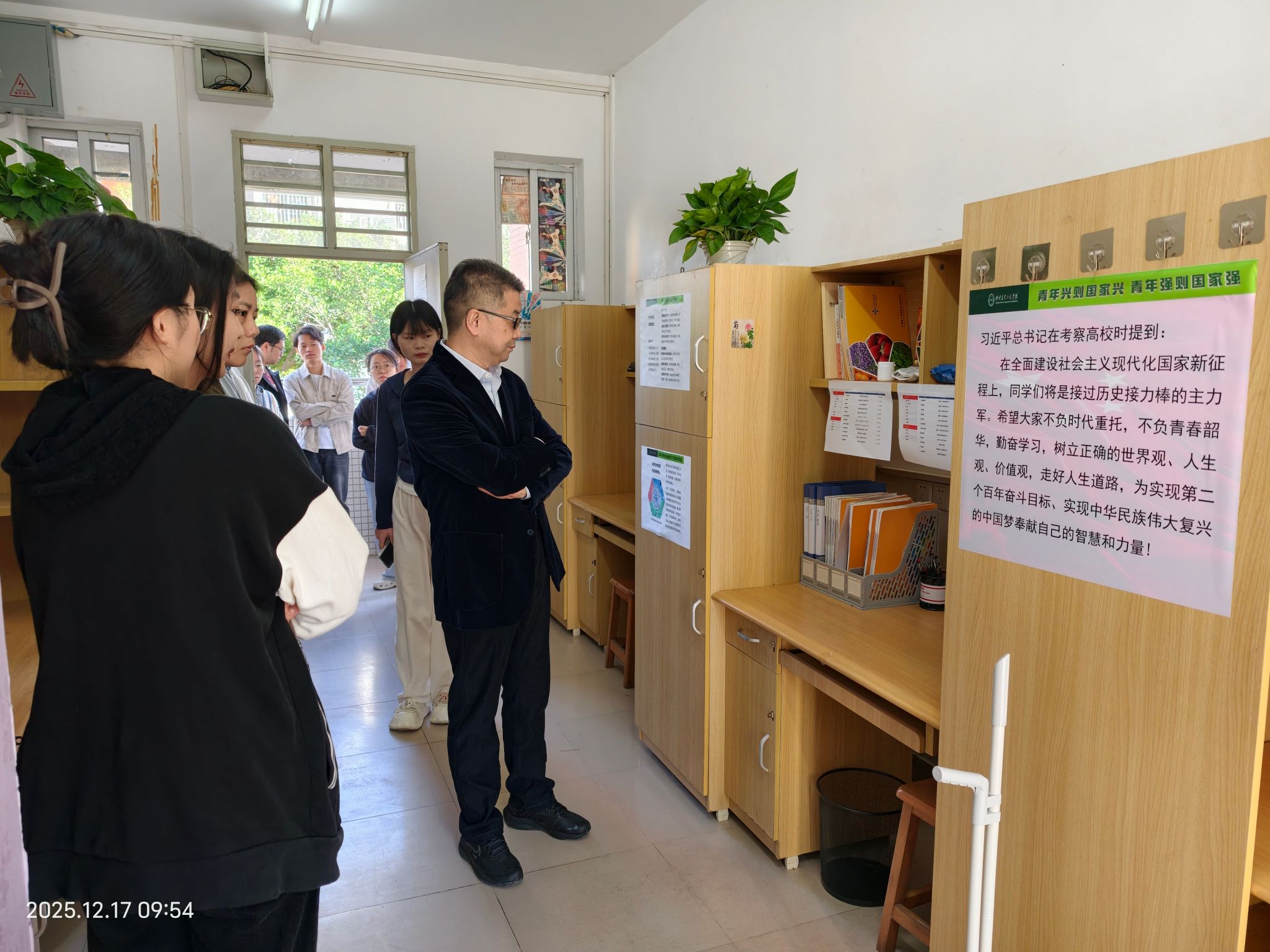 白卫东与支部党员一同走访校外导师工作室,详细了解工作室的空间布局、设施配置、日常维护等情况。研究生党员主动介绍了工作室的运行机制、科研进展与团队协作模式。白卫东对工作室目前的建设成效予以肯定,并针对现有不足提出改进建议。他强调,工作室应在聚焦科研功能的基础上,进一步融入生活气息,营造既专业又温馨的育人环境,推动“科研育人”与“社区育人”深度融合,为培养德才兼备、全面发展的高素质人才持续赋能。