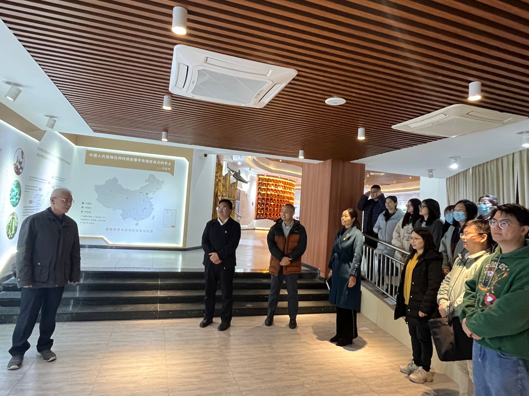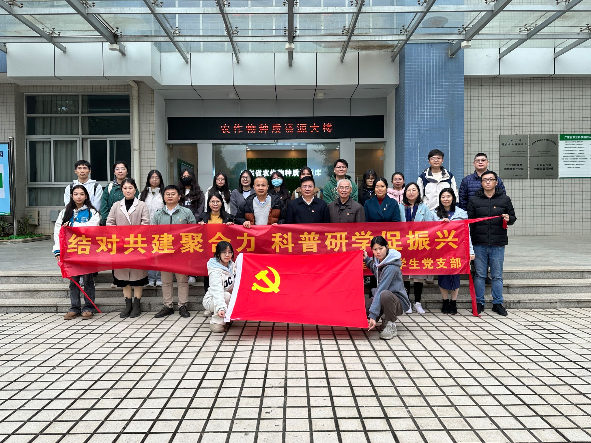 肖更生与支部成员们在农科院工作人员的带领下,参观了农科院的农作物种质资源综合信息展厅、广州种业之都的展厅、花卉大棚、国家种质广州野生稻圃和国家种质广州甘薯圃等。支部成员们深入了解到广东省农科院在在乡村振兴方面的最新进展和成果。
