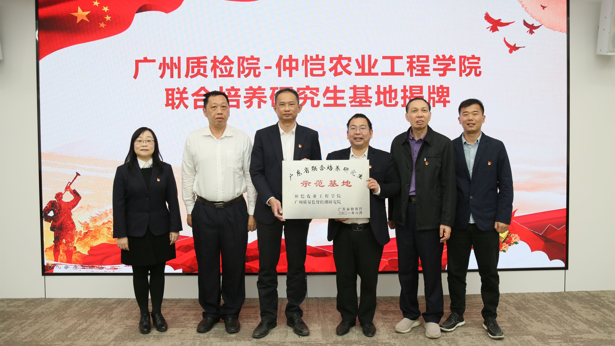 潘云飞、曾晓房共同为广州质检院、仲恺农业工程学院联合培养研究生基地揭牌。此次合作将进一步加强双方产学研合作和高水平人才培养工作。