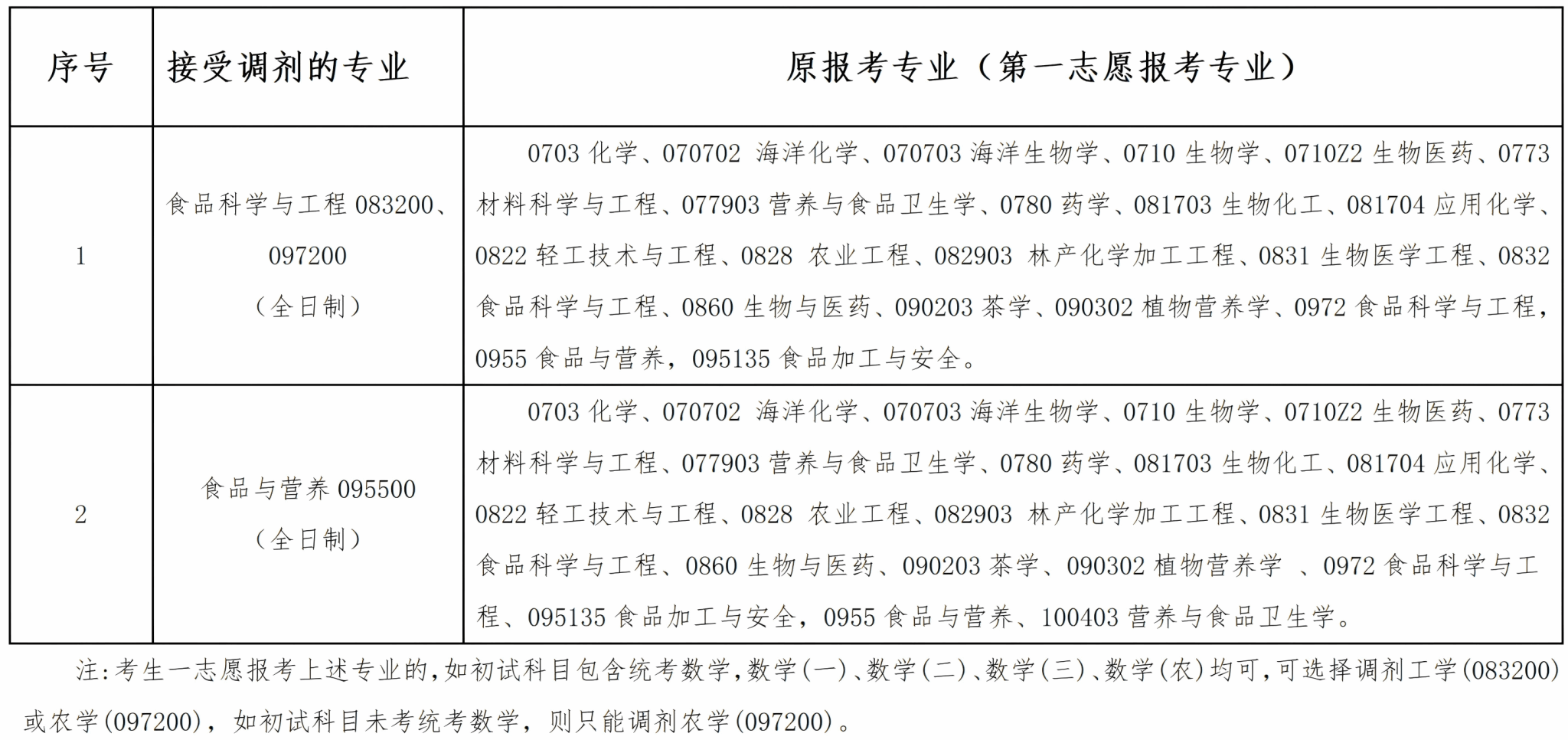 2.接受调剂的专业及原报考专业(第一志愿报考专业)要求如下: