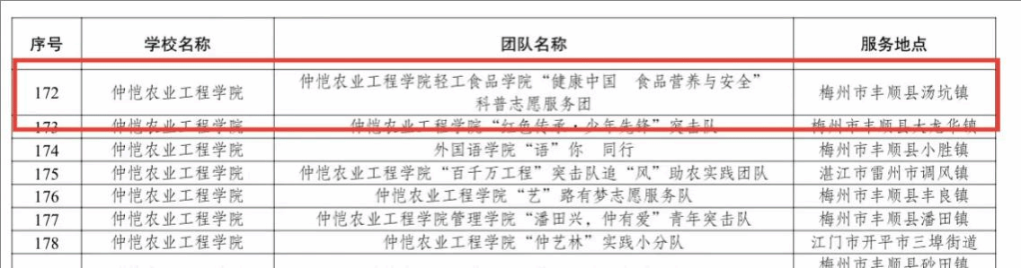 近日,团省委等公布了2024年广东青年大学生“百千万工程”突击队行动600个典型案例,覆盖岭南特色产业、海洋产业、县城科技服务、绿美广东等十大领域。我院“健康中国 食品营养与安全”科普志愿服务团项目入选2024年广东青年大学生“百千万工程”突击队600个典型案例。