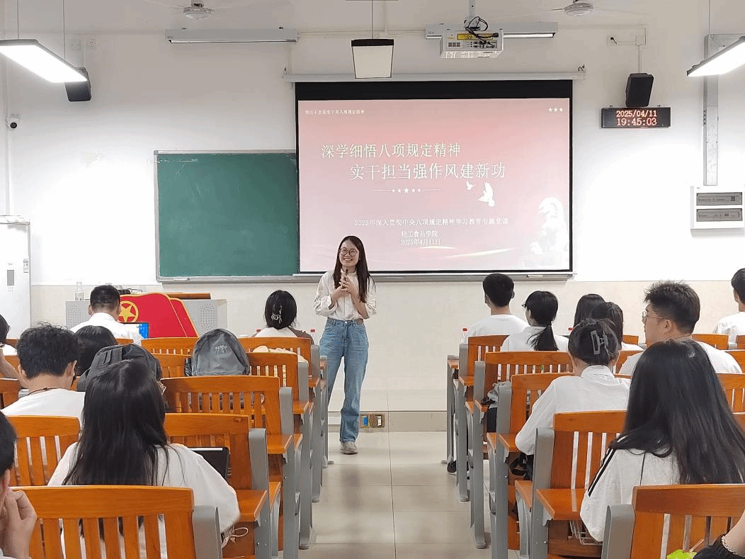 比赛结束后,吴晓瑜对同学们的表现给予了充分肯定并就微课引入、讲解技巧、互动环节、内容深度等方面提出了建议。吴晓瑜希望同学们可以通过理论学习深化对中国共产党人精神谱系的认识,通过实践行动挖掘精神背后的时代价值和社会意义,从而坚定理想信念,做到知行合一。活动的尾章,吴晓瑜带领全体同学学习了中央八项规定精神,为本次活动画上了具有深刻教育意义的句号。