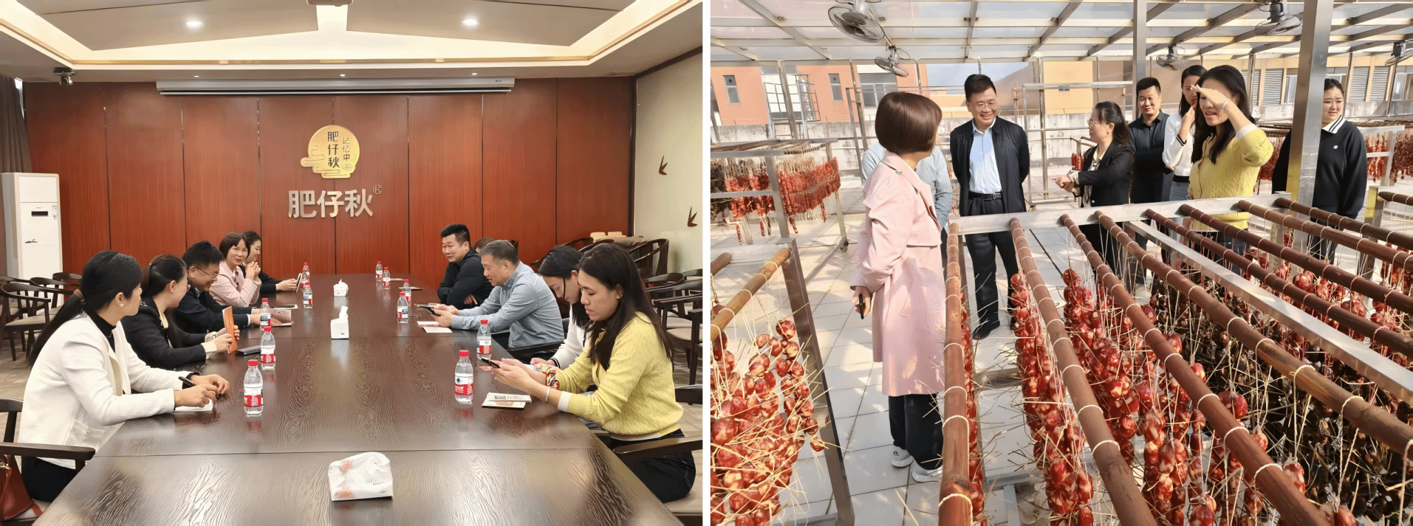 调研组首站抵达具有悠久历史的东莞肥仔秋食品有限公司。在企业负责人的陪同下,调研组深入生产一线,详细考察了传统腊味产品的现代化生产工艺、质量控制体系及品牌建设情况。双方就传统食品如何依托科技创新实现标准化、规模化、品牌化发展,以及如何将地方特色食品融入大健康产业趋势等议题进行了深入交流,初步探讨了在人才培养、技术研发等方面的合作可能性。