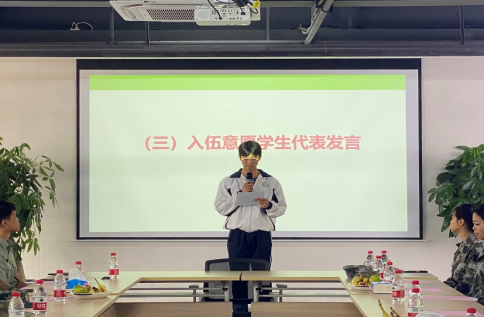 退伍学生代表食品222周佳泽向大家分享了参军入伍的感悟和收获,并表示军旅生涯是一段十分宝贵的经历,不仅锻炼了自己的品质,锻炼了责任担当,也提高了能力和素质。入伍意愿学生代表包装211张锴洋同学发言,作为大学生,更应积极响应国家号召,积极参军入伍,努力实现成为中国人民解放军的梦想,为国家安全奉献自己的力量。