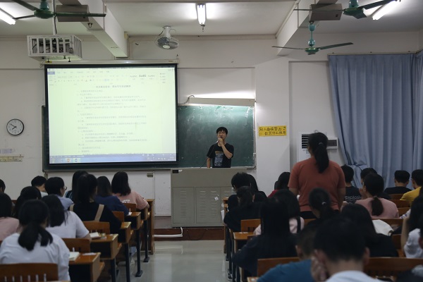 张旭老师从专业学习帮扶、社团生活联系、心理健康疏导等三个方面介绍了大学生党员“七个一”主题活动内容中每位党员联系一间学生宿舍、每位党员帮扶一名学生的重点关注内容:一在专业学习方面,每位党员要了解所联系宿舍的学习情况、协助新生宿舍构建良好的学风舍风,同时为专业课学习有困难的学生提供建议和帮助,更要定期开展专业交流会,协助新生全面了解专业特色与科研动向等;二在生活联系方面,要积极观察了解所联系宿舍的生活情况,引导新生自觉遵守宿舍管理规定,培养健康良好的生活习惯,积极参加学校和学院各种文体活动,丰富课余生活;三在心理健康疏导方面,要学习有关心理健康知识,积极与所联系宿舍学生交流,关心关爱所联系宿舍学生,及时发现新生心理健康问题并进行必要的疏导,有特殊情况及时向各支部书记、辅导员老师汇报。同时强调在帮扶过程中,要注意沟通交流的方式方法,通过走访宿舍和个别交谈,及时发现情况,做好保密工作,建立良好的帮扶关系。