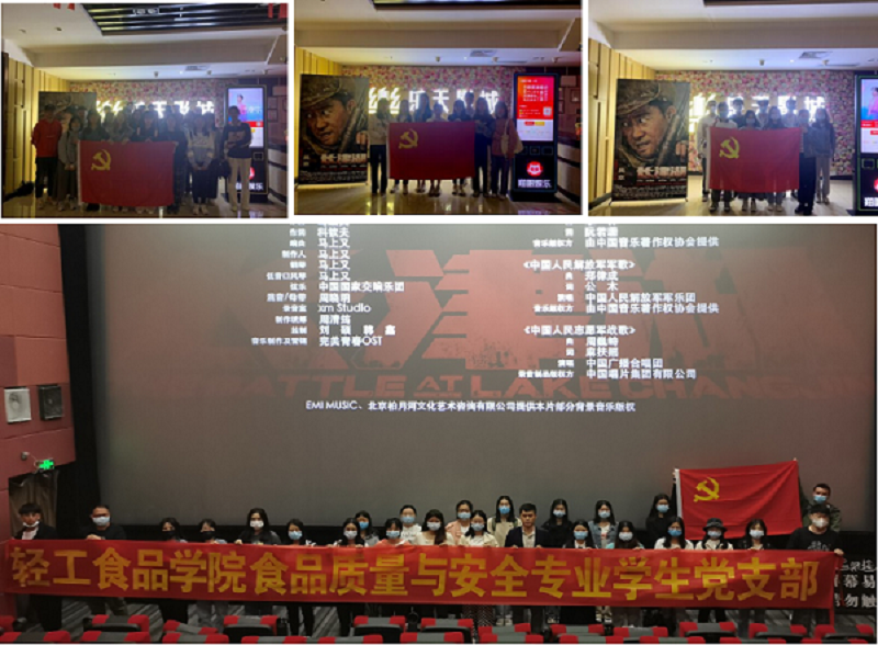 近期,轻工食品学院党委组织全体学生党员开展七个一主题学习活动——观看电影《长津湖》,一部抗美援朝历史战役为背景改编的爱国主义教育题材电影。其中,食品质量与安全专业学生党支部于20211017下午组织观看,食品科学与工程专业学生党支部、生物工程专业学生党支部、包装工程专业学生党支部则于20211024下午组织前往。