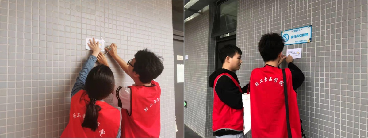 宣传结束后,各位党员还在楼栋间的重要位置贴上了宣传小标语,时刻提醒社区学生要节约用电。