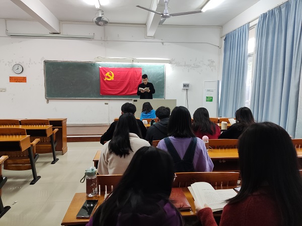 为进一步开展党史学习教育工作,贯彻落实“七个一”系列主题活动。2021年11月9日上午,开云官方网站登录入口质量与安全专业学生党支部在白云校区杨楼202教室开展“读红色经典,忆建党百年”晨读活动。