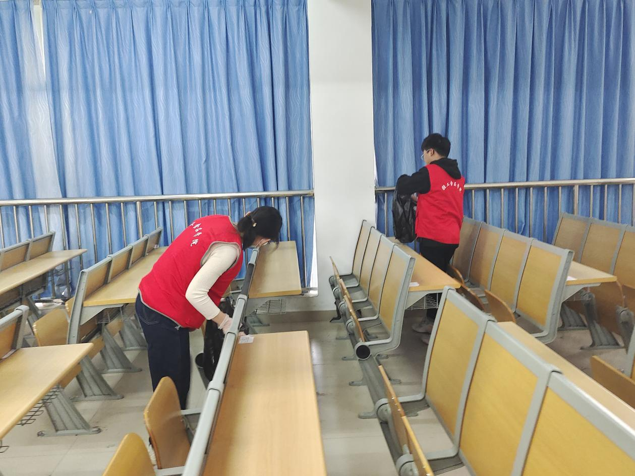 教室清洁小组的党员们负责打扫D栋1-4层教室。参与清扫活动的同学们分工明确、团结合作,利用提前准备好的抹布、扫帚、垃圾袋等工具,认真清扫地面、清理桌面及抽屉的垃圾、擦拭黑板和多媒体讲台等。